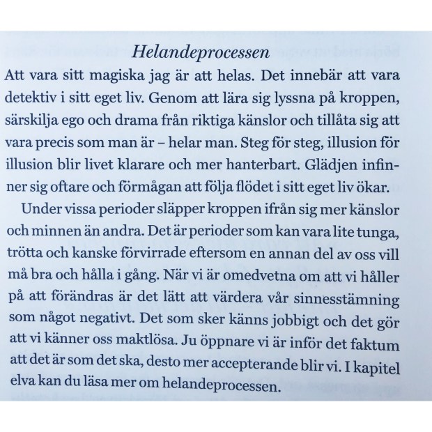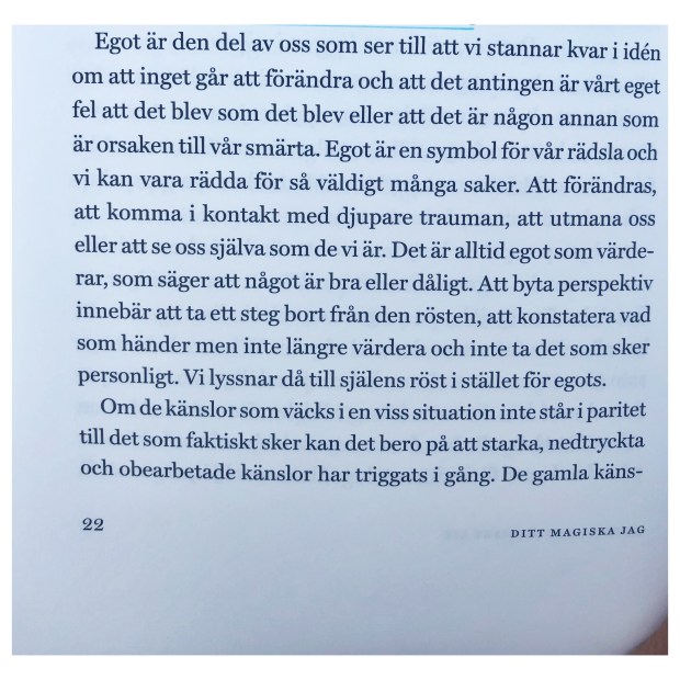 Ps – Idag är sista dagen att köpa fantastiska boken “Ditt magiska jag” med rabatten 20%. Klicka in dig här och läs mer. Bifogar några utdrag ur boken här nedan. Boken är fantastisk på så många sätt. Jag läser den för andra gånge och sträcker under, gör övingar, sätter tabbar och markerar för fullt ❤